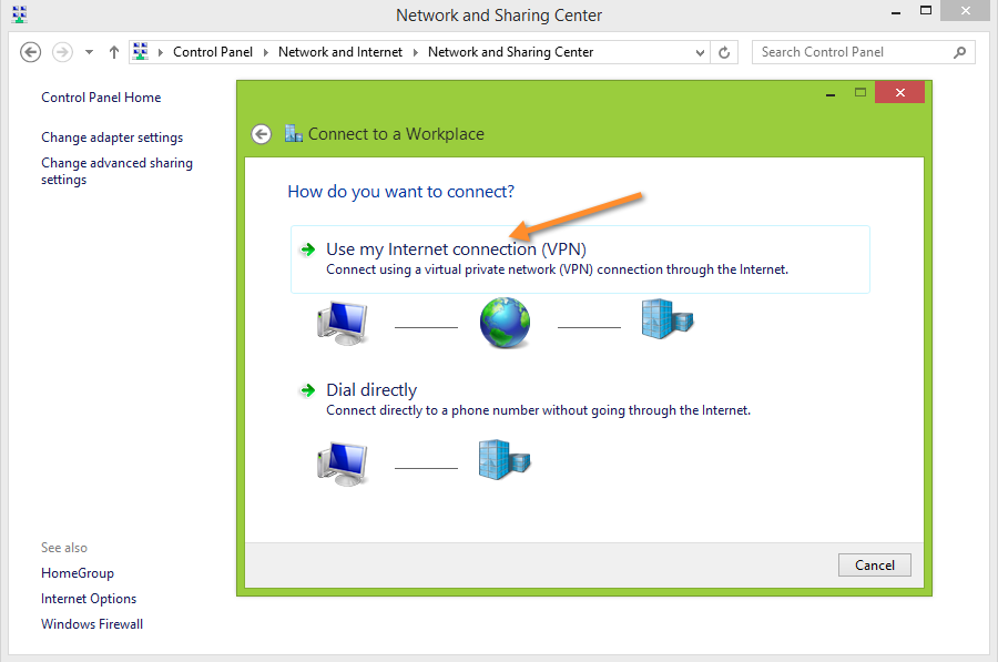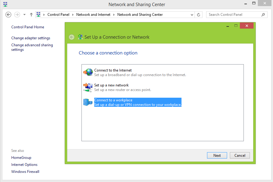 Following instruction have been perform using Windows 8.1 using Native VPN client.